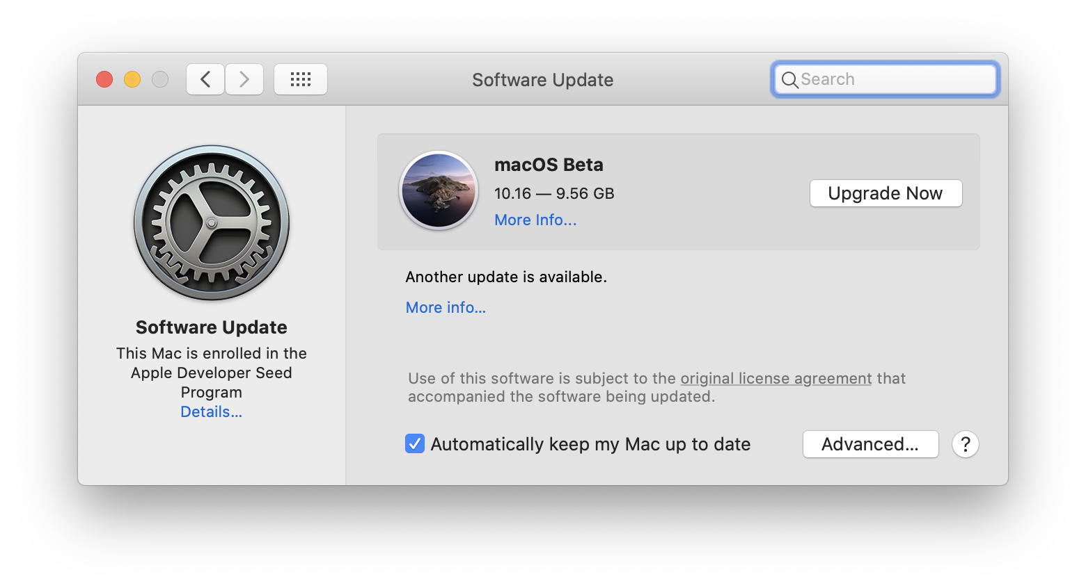 프로파일이 정상적으로 설치되었다면, "설정 > 소프트웨어 업데이트"에 macOS Beta 버전이 표시됩니다.