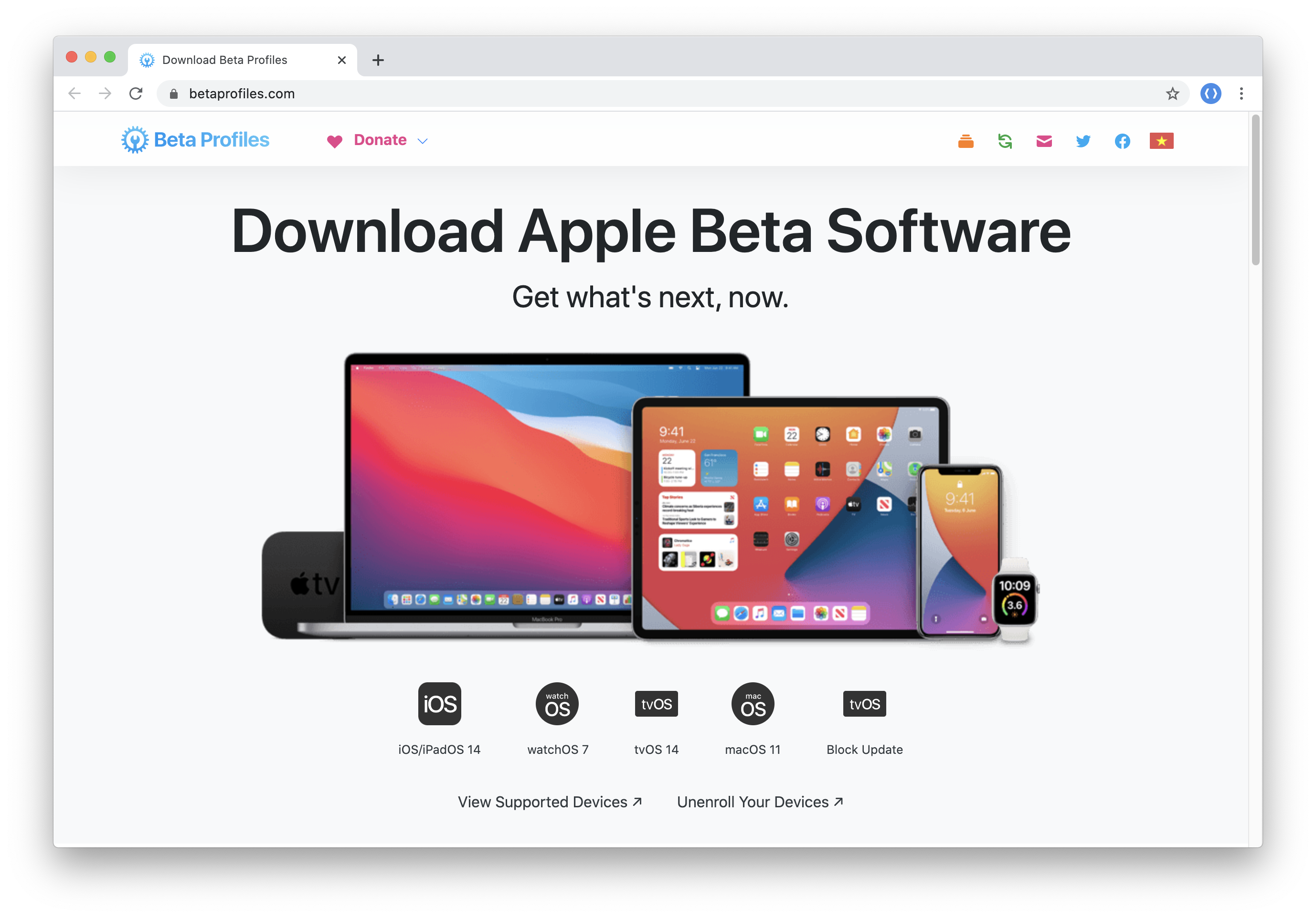 Download latest beta profiles for iOS, iPadOS, macOS, watchOS and tvOS.
