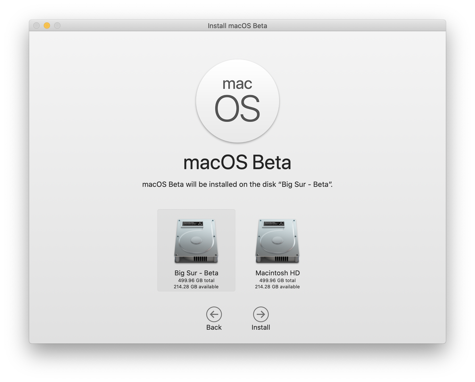 macOS 11 Big Sur 발표 직후 개발자 베타 버전 1이 배포되었으며,