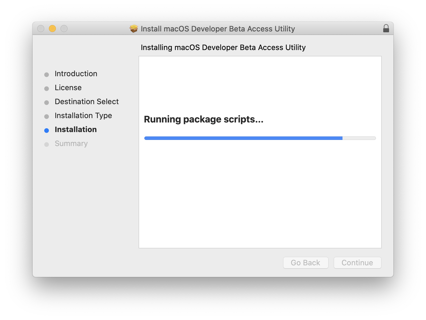 약관에 동의하고 계속 진행하면 여러분의 맥에 베타 프로파일이 설치됩니다.