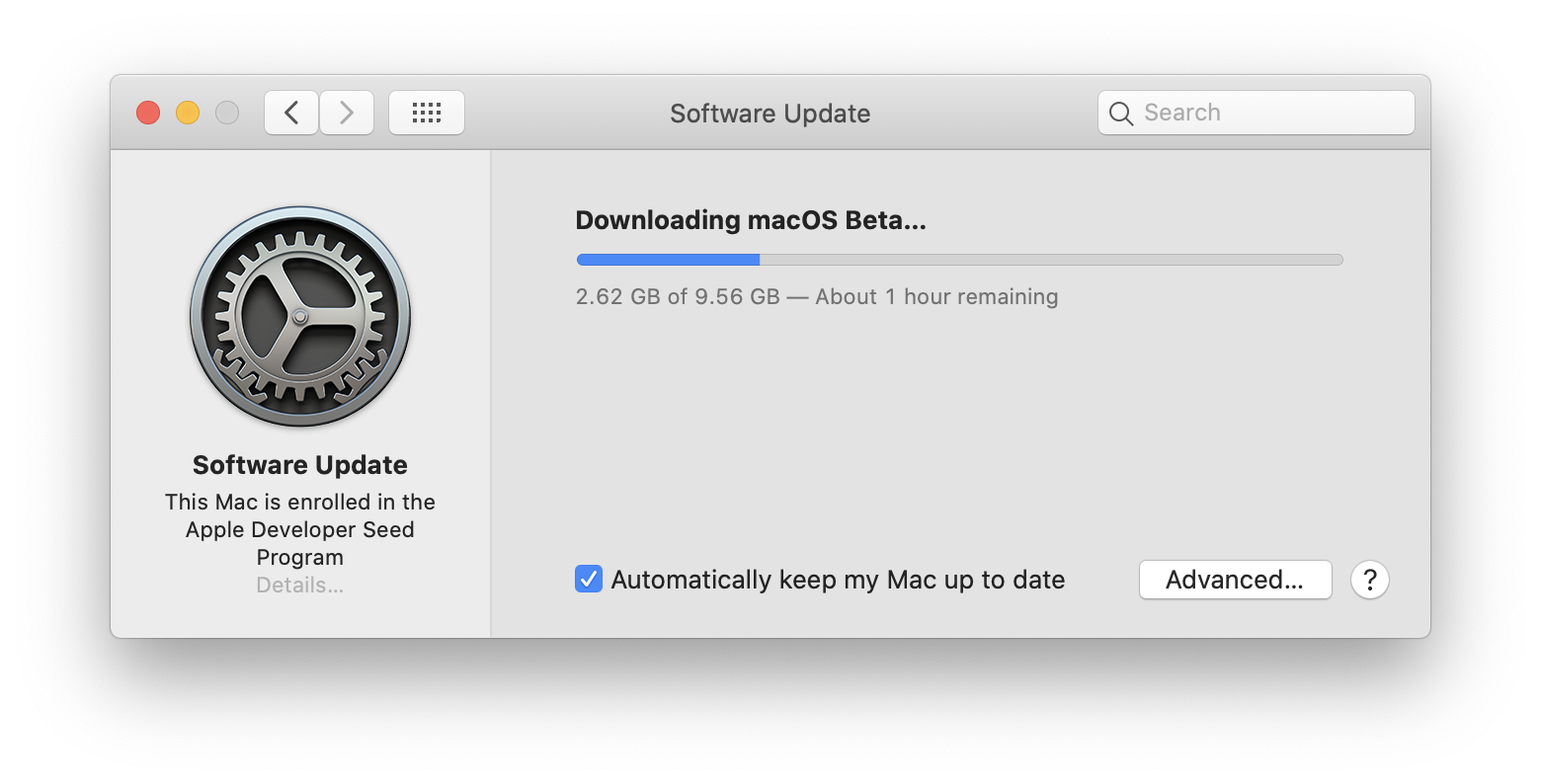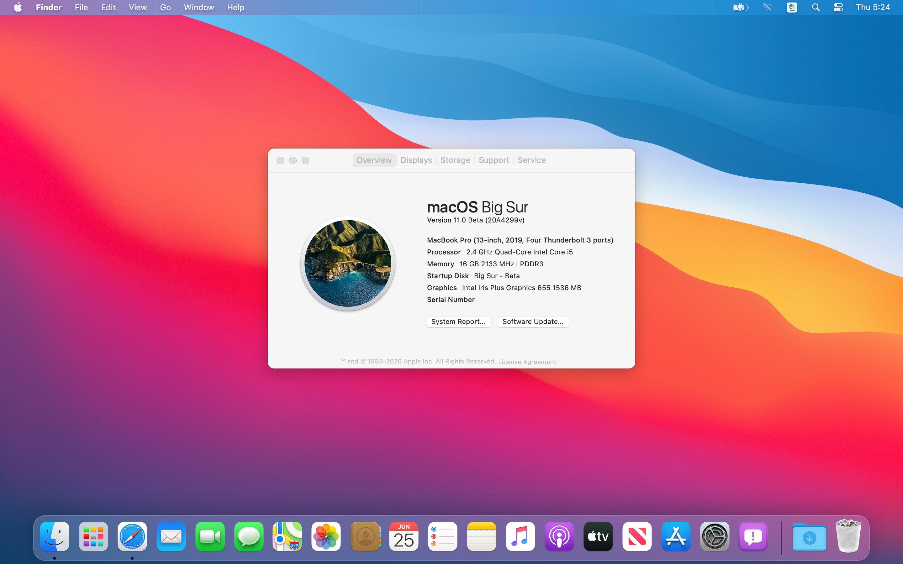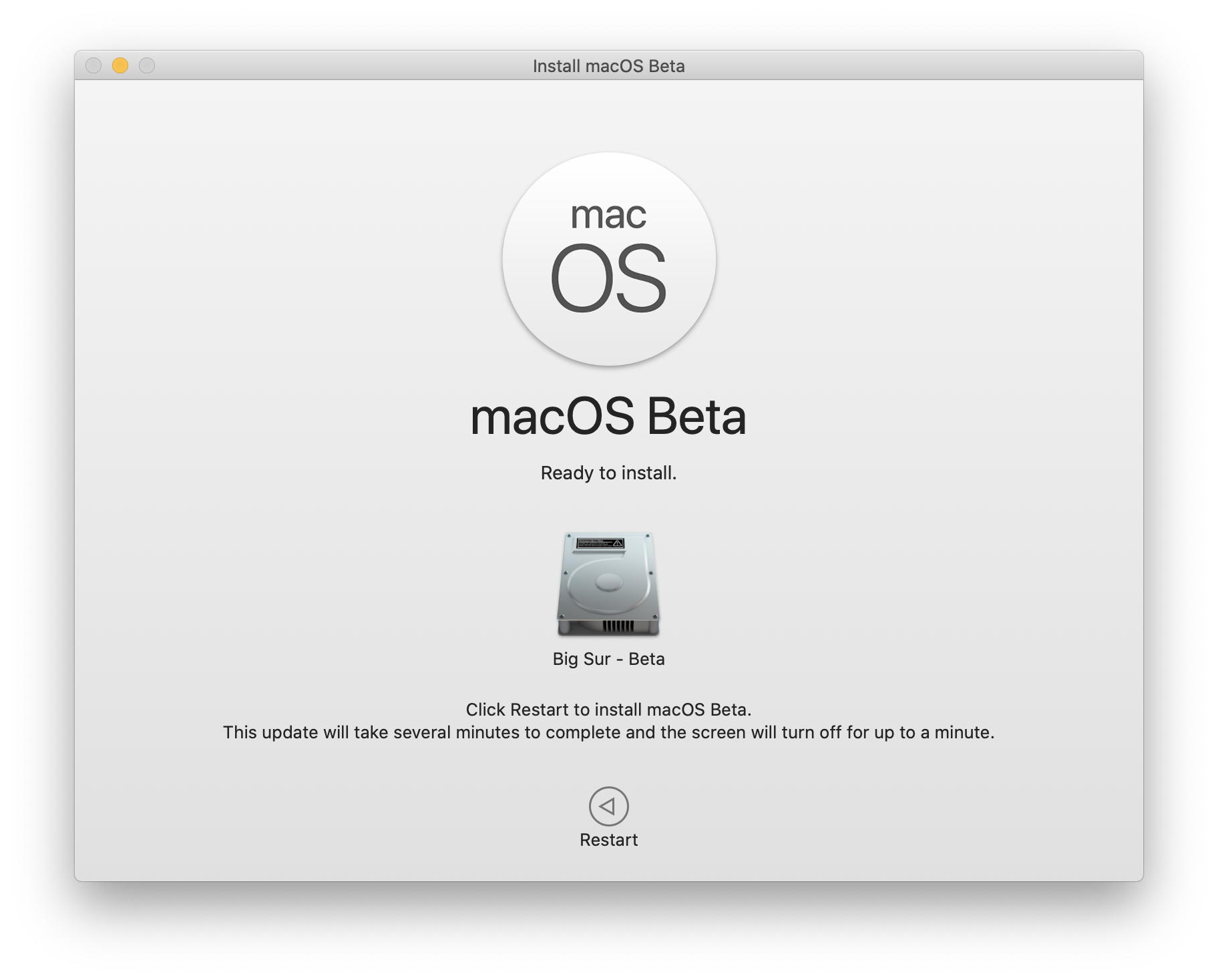 macOS 11 Big Sur 발표 직후 개발자 베타 버전 1이 배포되었으며,