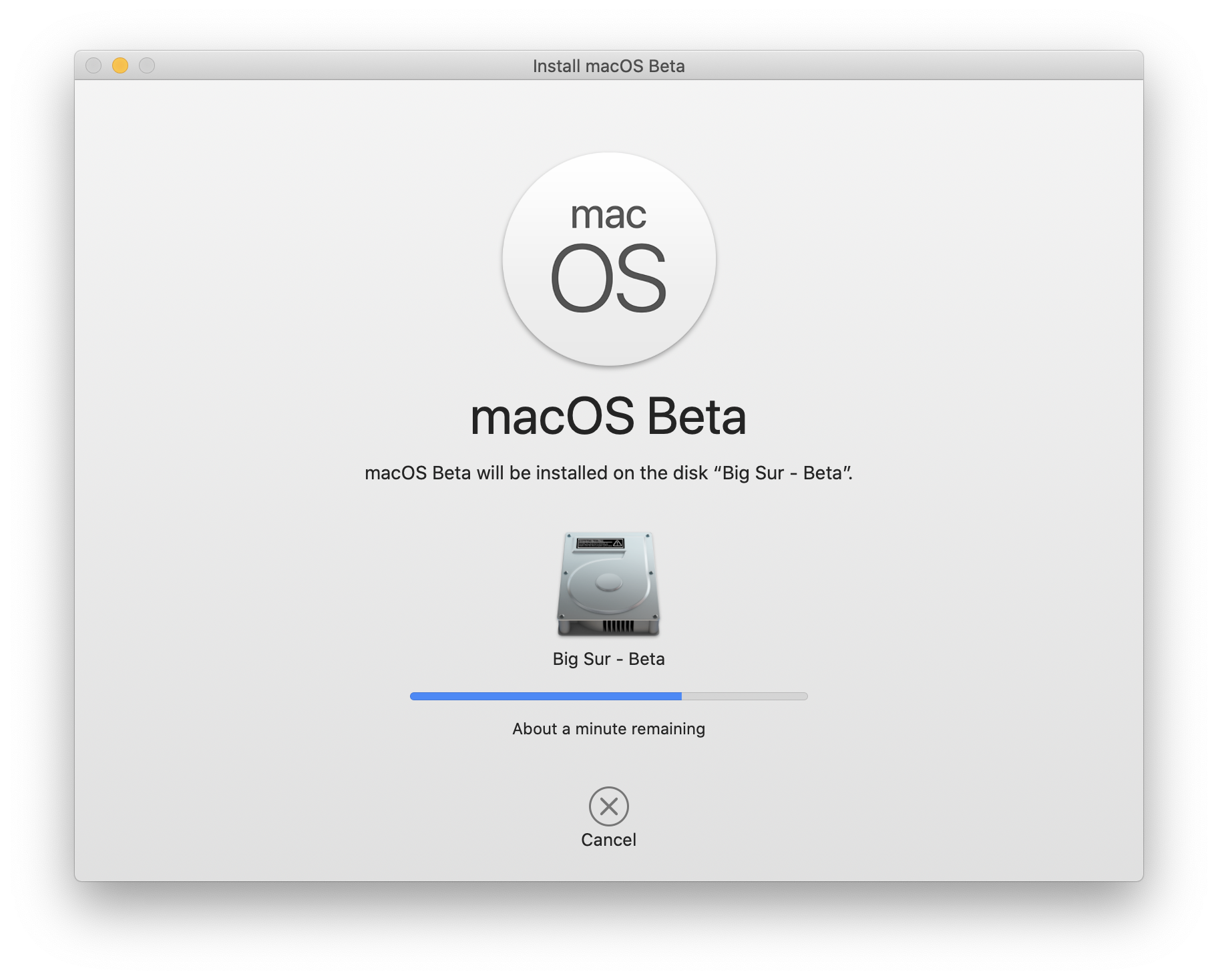 macOS 11 Big Sur 발표 직후 개발자 베타 버전 1이 배포되었으며,