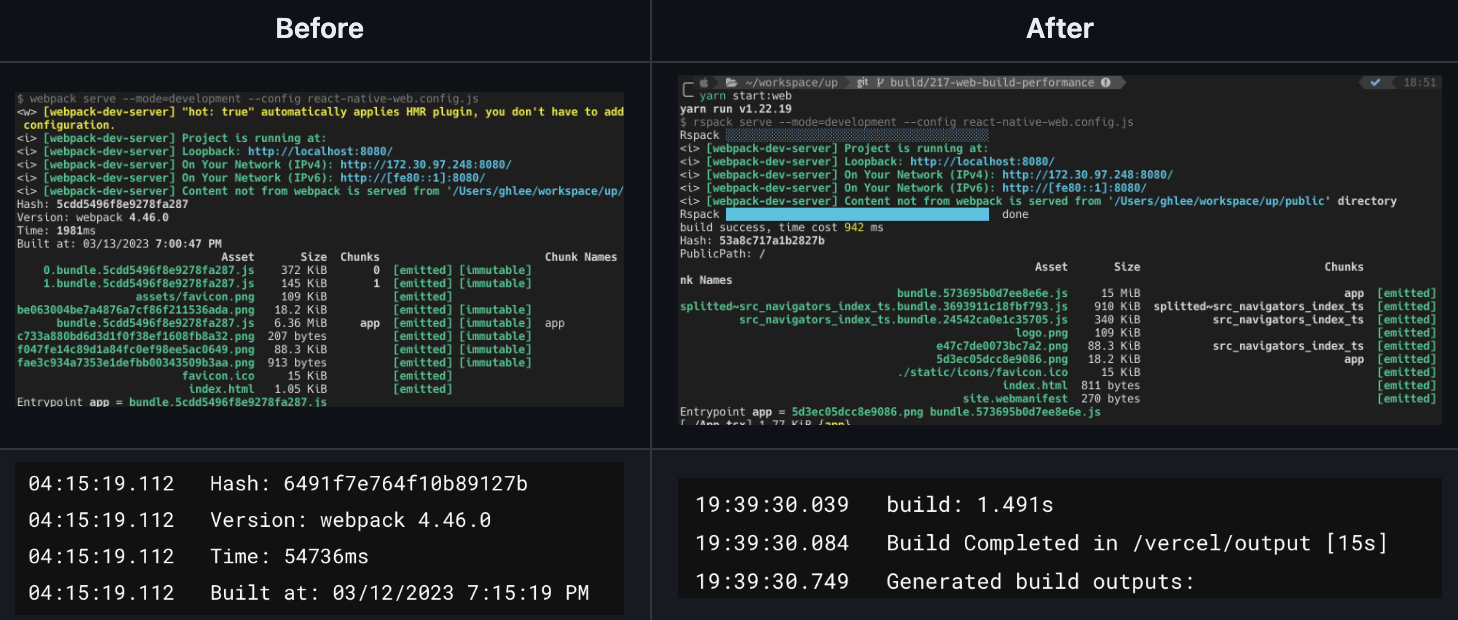 참고로 Up 웹 애플리케이션은 Rspack 번들러 기반으로 빌드되고, Storybook 웹 애플리케이션은 Webpack 기반으로 빌드되고 있다. Up 프로젝트 내에 Metro, Rspack, Webpack 세 가지 번들러가 존재하는 셈. 덕분에 초기 빌드 환경을 바로잡기 위해 꽤나 골치가 아팠다.