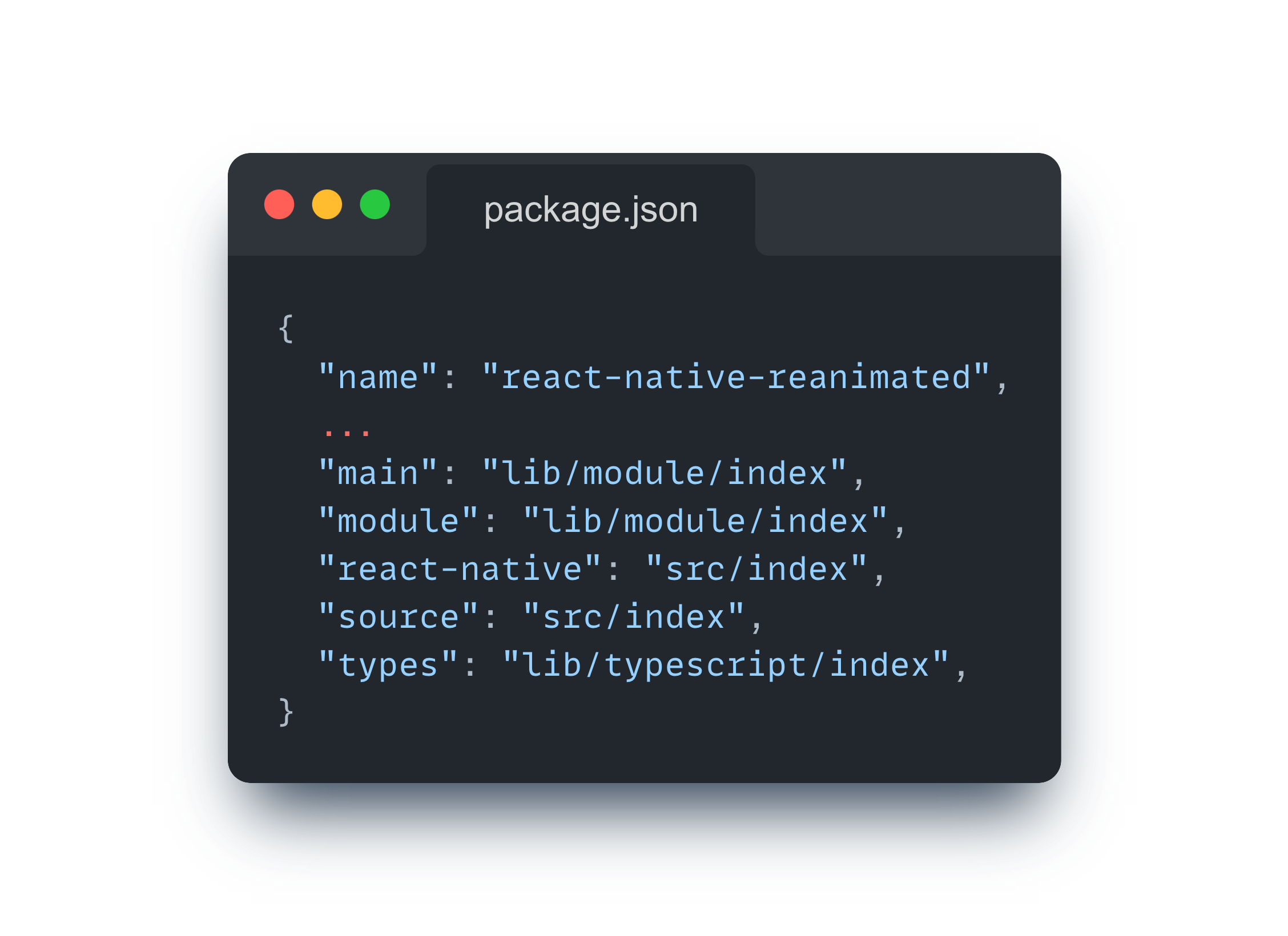 react-native-reanimated 라이브러리를 예시로 확인해보면 package.json 파일에 아래와 같은 정보가 포함된 것을 확인할 수 있다.