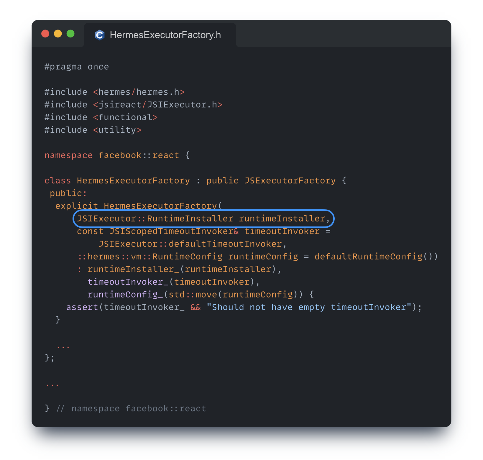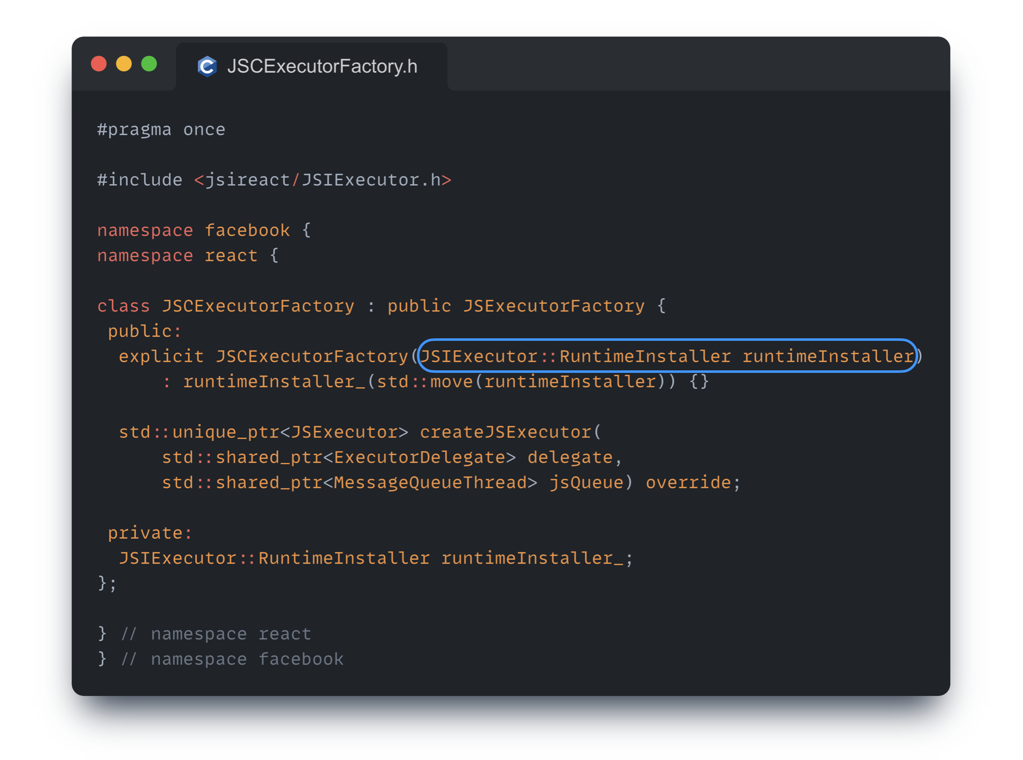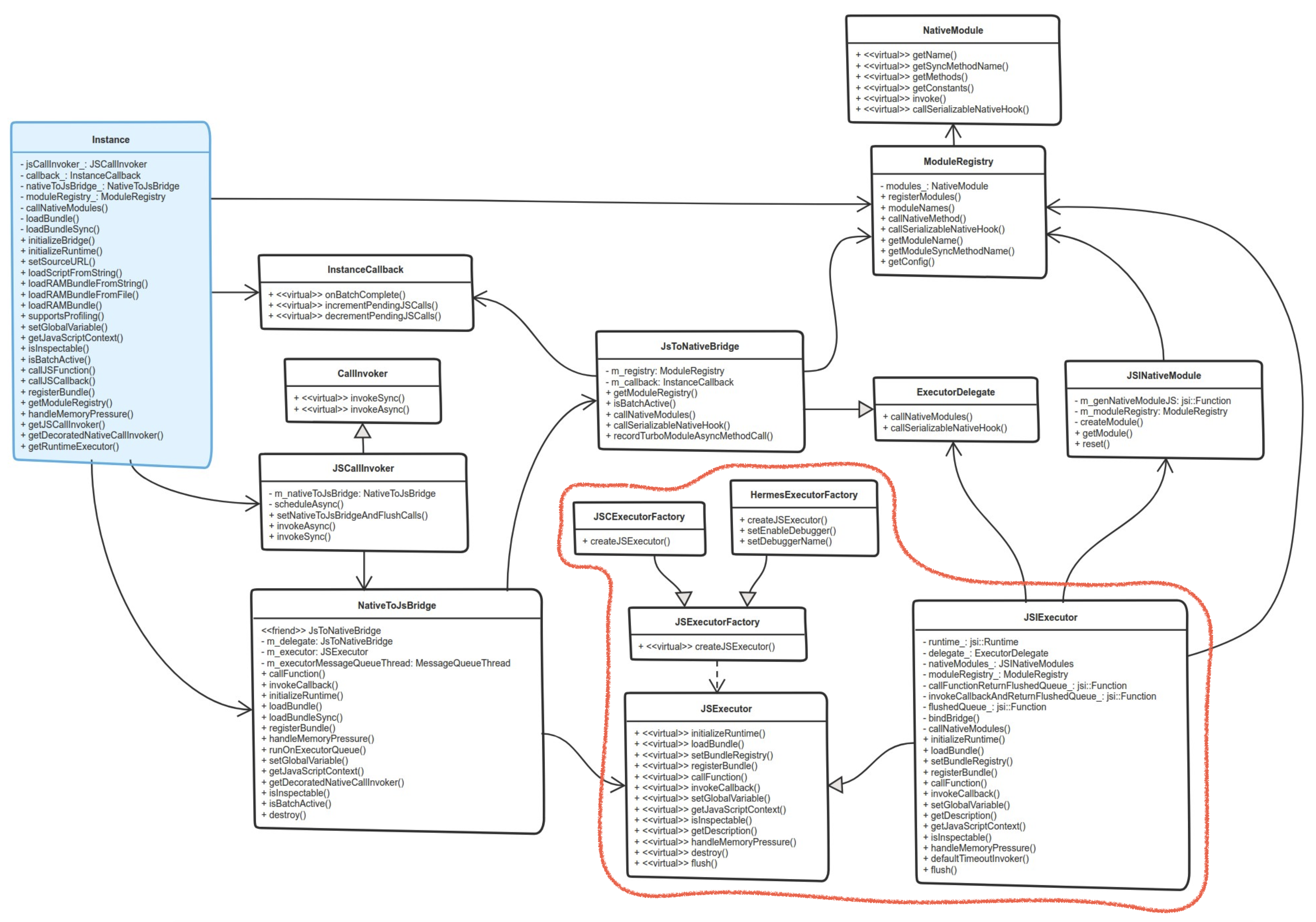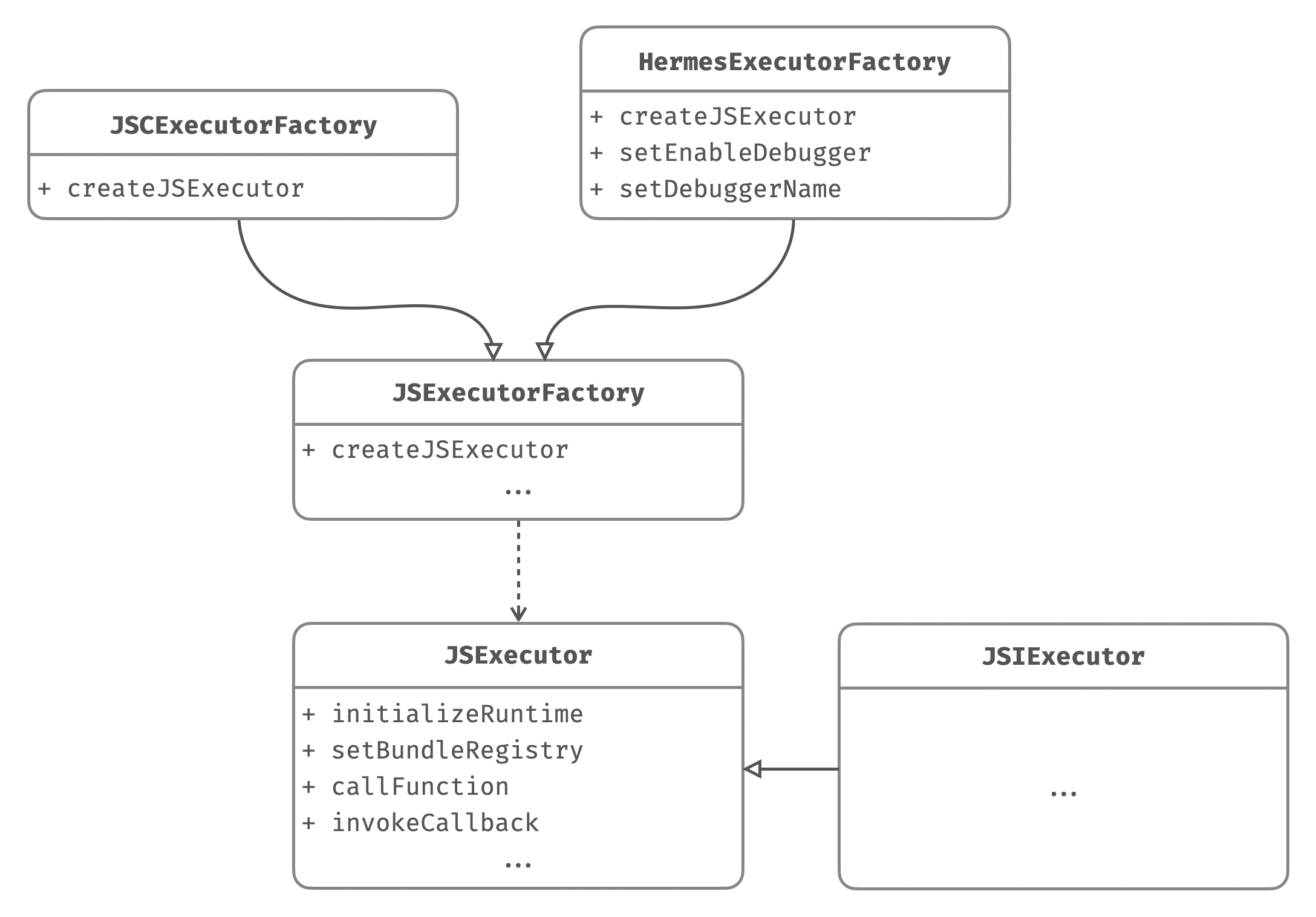앞서 살펴본 내용을 되짚어보면 JSC, Hermes 모두 JSExecutorFactory 를 통해 런타임 인스턴스가 생성된다고 이야기했다.