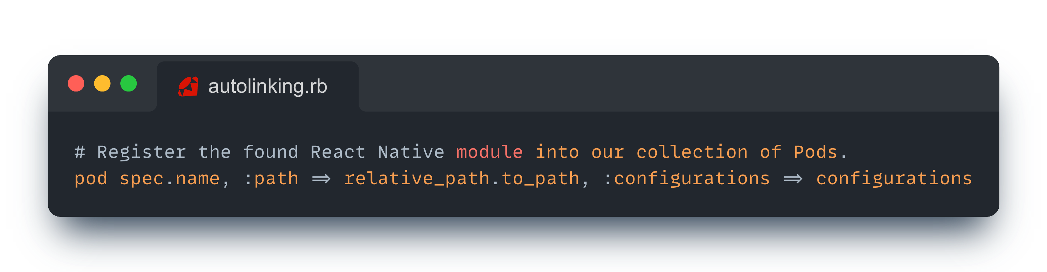여기에서 Auto Linking을 처리한다. 구현체를 조금 살펴보면 네이티브 모듈들을 찾은 뒤 해당 네이티브 모듈의 podspec을 찾아 빌드 타겟에 추가하는 것을 확인할 수 있으며, 이 덕분에 직접 빌드 구성을 손대지 않고도 외부에 설치한 네이티브 모듈을 손쉽게 빌드할 수 있게 된다.