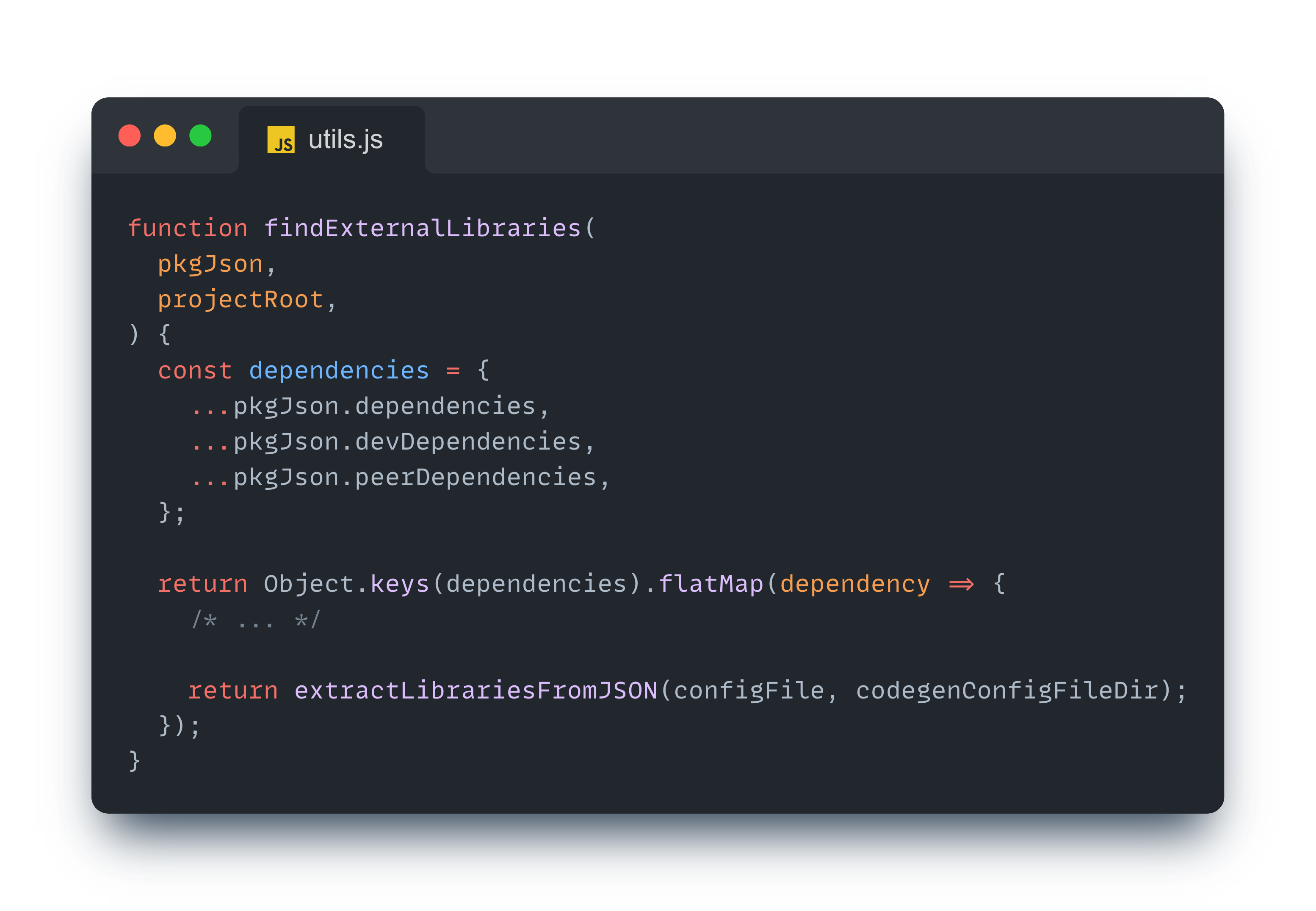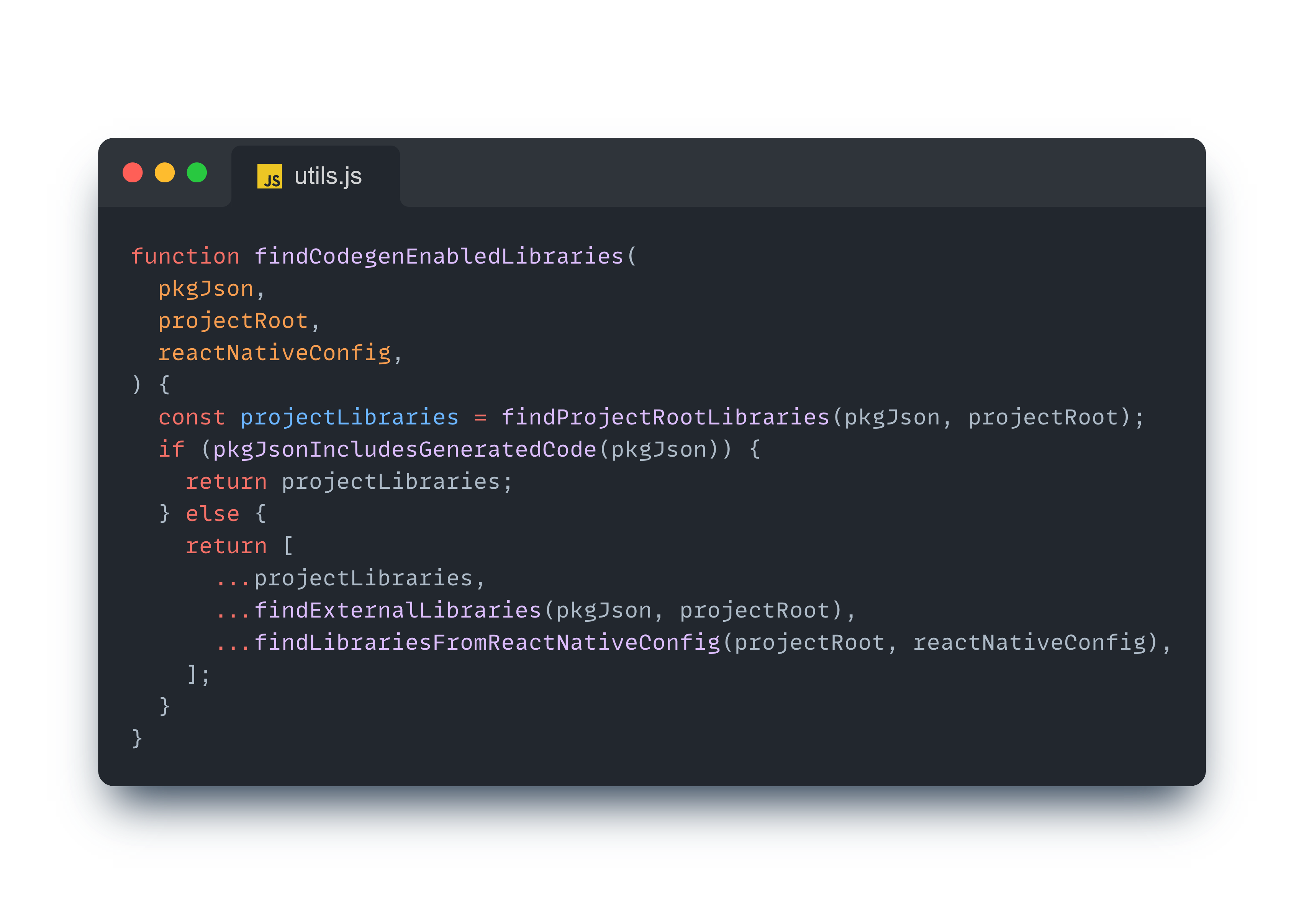 extractLibrariesFromJSON 함수를 통해 codegenConfig 구성이 존재하는지 확인한 뒤 라이브러리 정보를 담고 있는 객체를 반환한다.