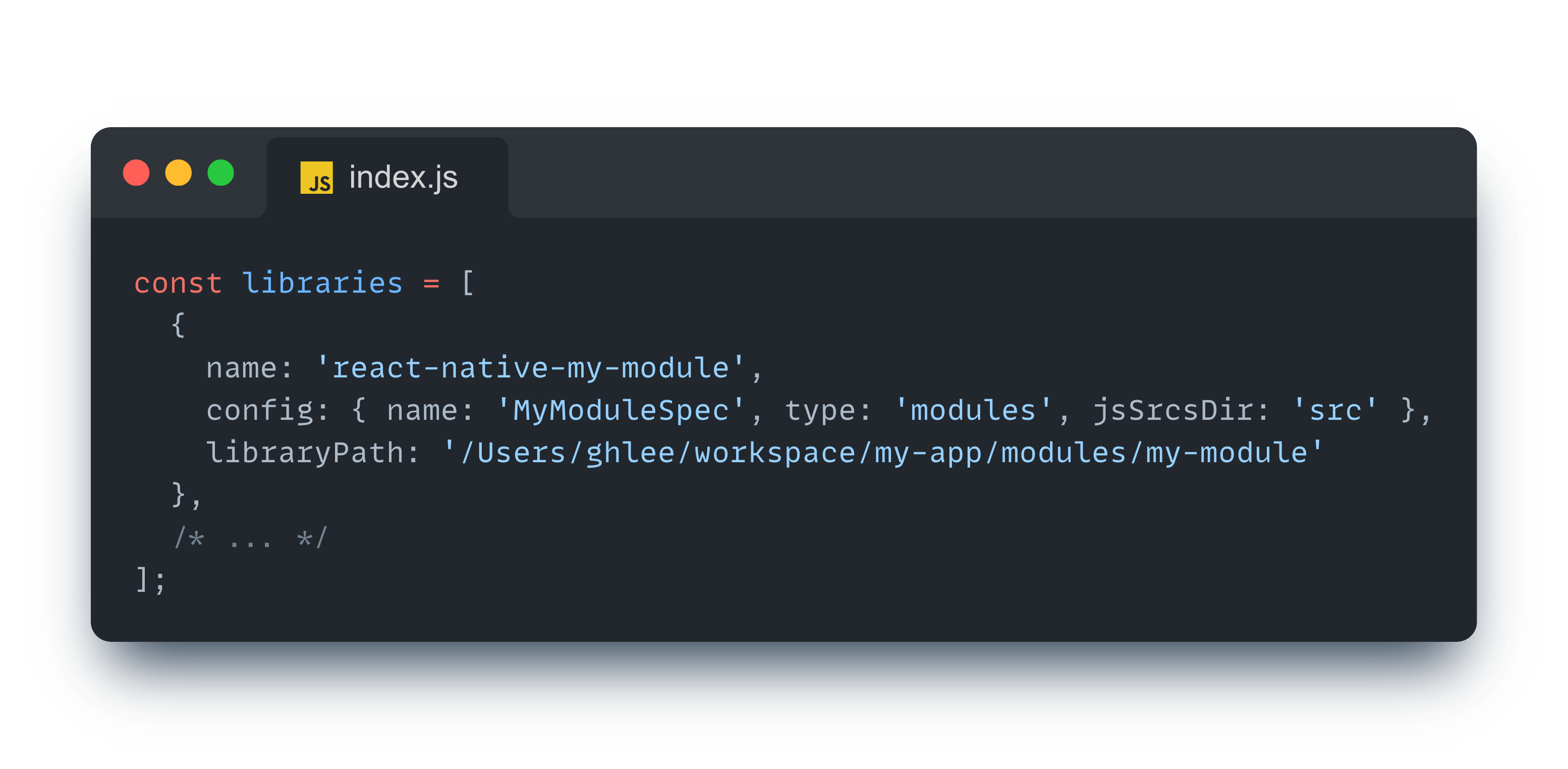 - moduleName: 모듈의 이름 (TurboModuleRegistry 에서 가져올 때 참조될 이름)