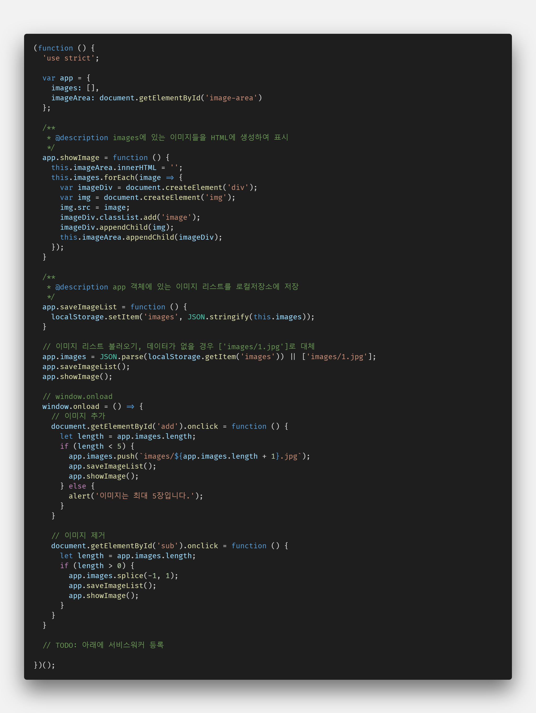 앞으로 우리는 서비스워커를 추가하여 오프라인에서도 웹 페이지에 접속하고 이미지를 볼 수 있도록 개발해나갈 것 입니다.