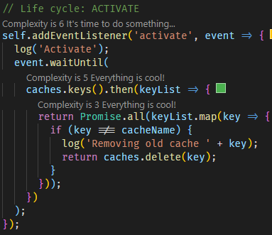 우리는 필요한 리소스(앱 셸)들을 캐싱해야 하기 때문에 waitUntil을 통해 설치 단계를 연장시켜야 합니다.